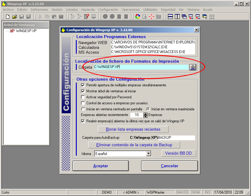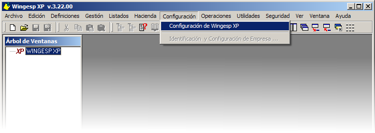 Entremos en Menú Configuración, opción Configuración de Wingesp XP.